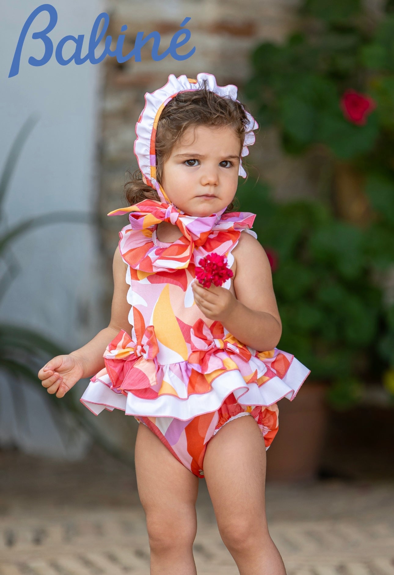 Babine romper & bonnet set.