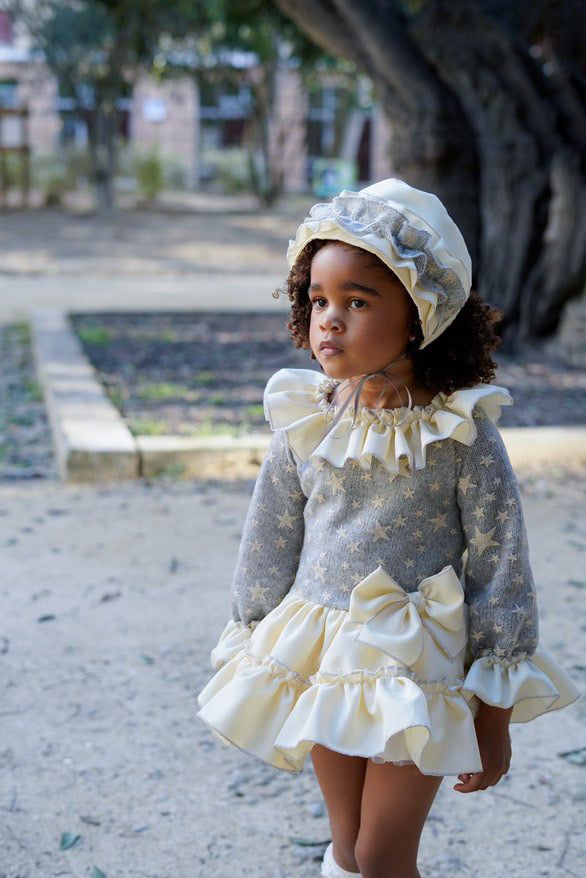 Set consists of the dress, knickers and your choice of bow or bonnet.