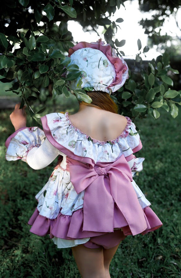 Set consists of the dress, knickers and your choice of bow or bonnet.