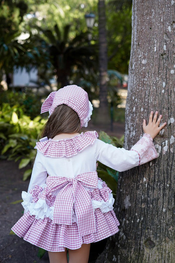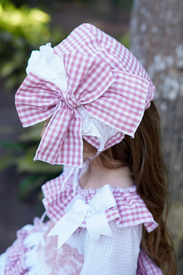 Set consists of the dress, knickers and your choice of bow or bonnet.