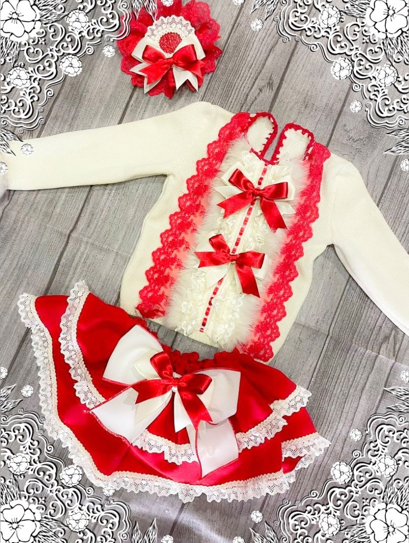 3 piece set includeding frilly skorts, knitted jumper & hair piece.