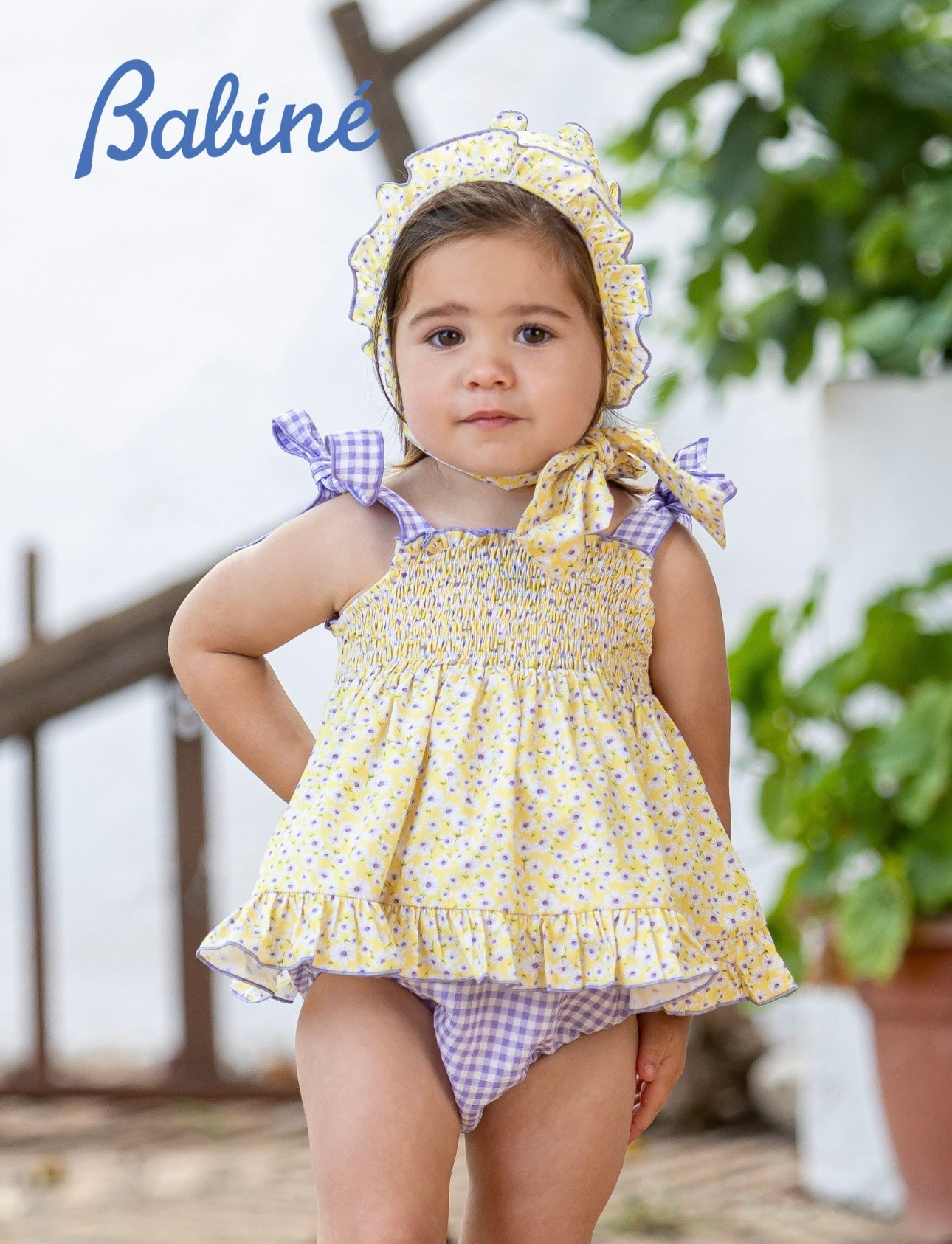 Babine romper & bonnet set.
