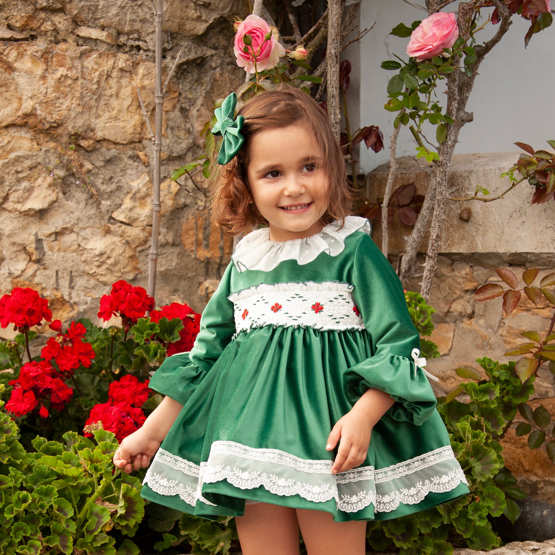IN23-43 BOTTLE GREEN SMOCKED DRESS