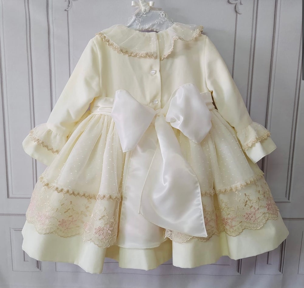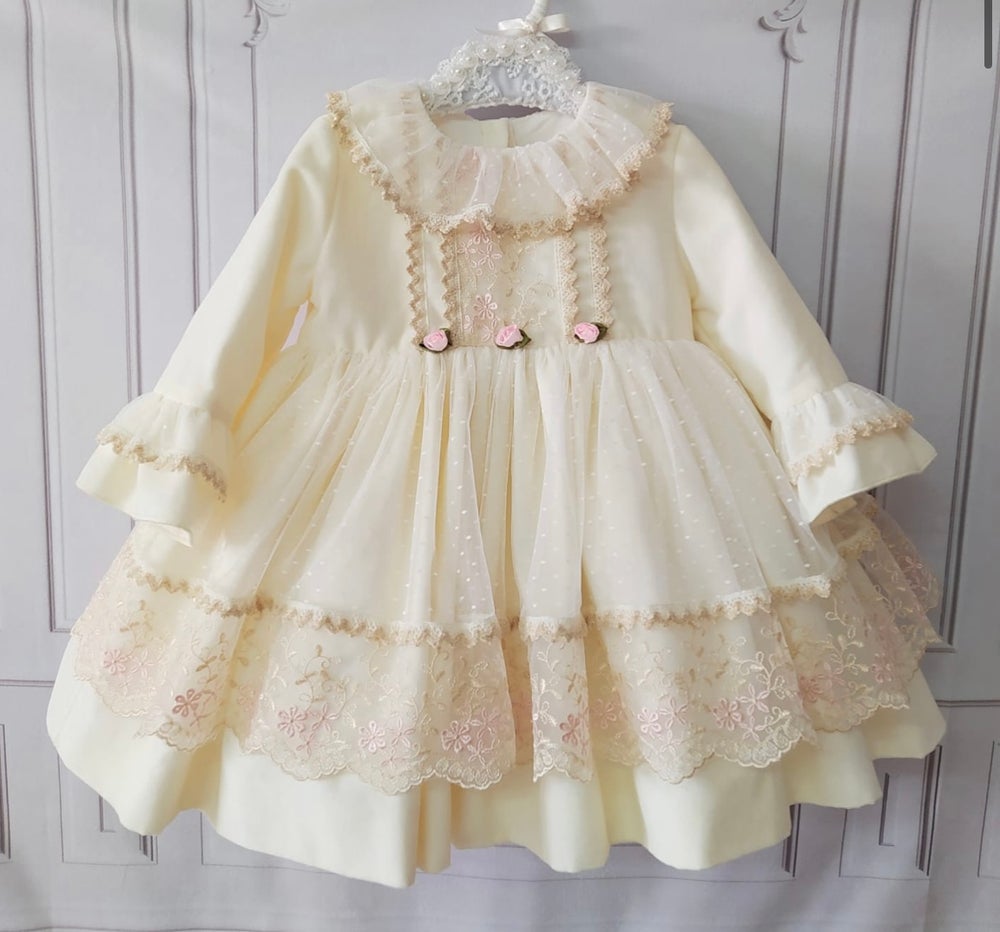 Handmade Spanish brand. Current turn around time is aprox. 4-6 weeks. Amazing quality, built in petticoat. Customise sleeves, color etc. Just add in the comment box at checkout. To leave a 30% deposit enter the code PAYMENTPLAN. I shall then get in contact to discuss your plan. True to size. 3 months: 0-3 months 6 months: 3-6 months 9 months: 6-9 months 12 months: 9-12 months 18 months: 12-18 months 24 months: 18-24 months 3 years: 2-3 years