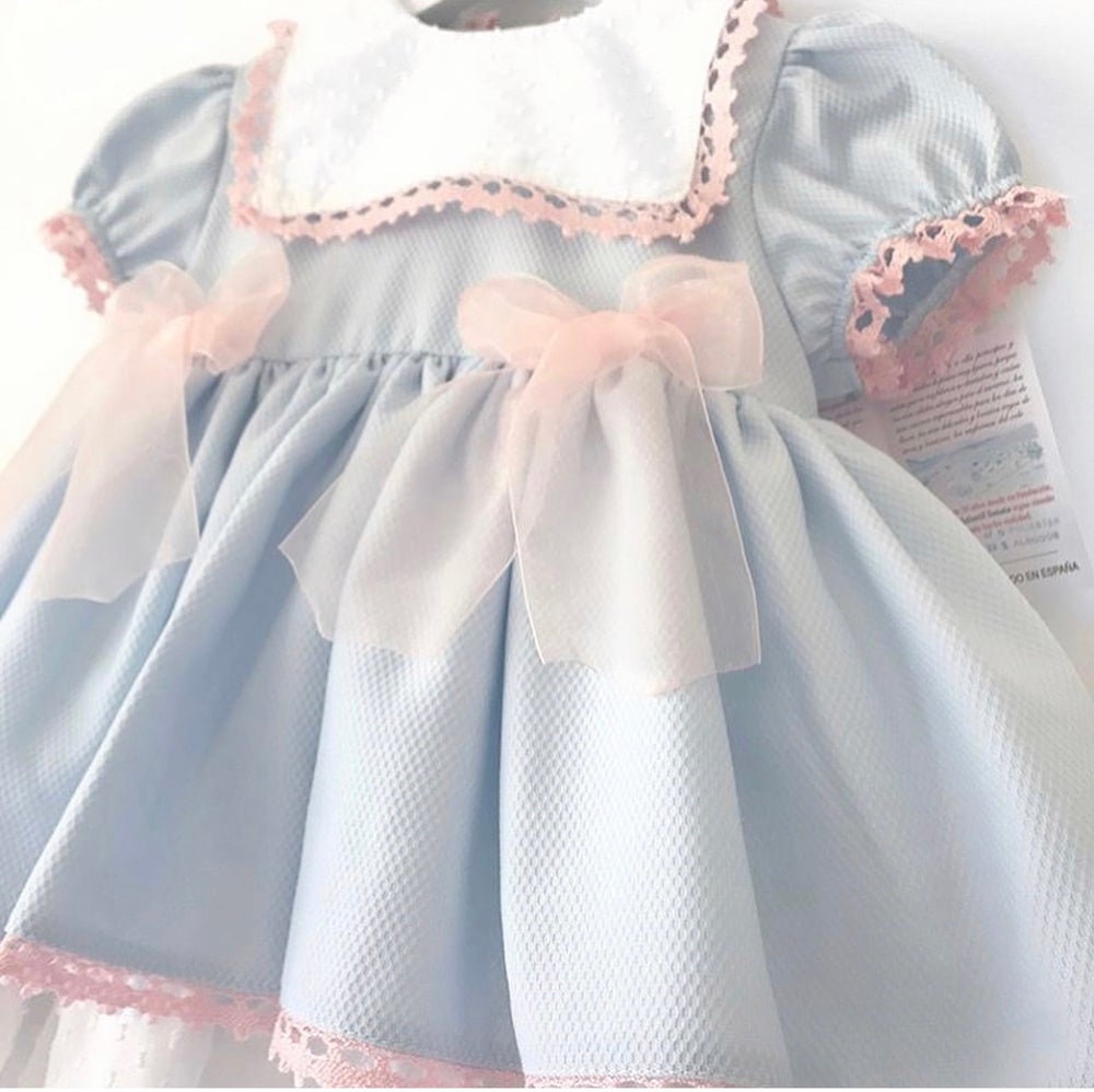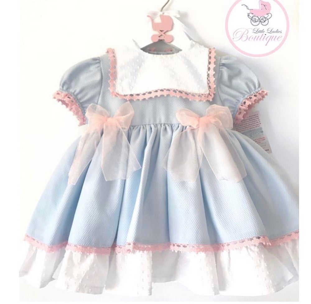 Exclusive design to Little Ladies Boutique. Available in different fabrics and colors. Baby blue Cream Baby pink Florals Red Navy Bottle green Lilac Choose your bow colors too! Sonata Handmade Spanish brand. Current turn around time is 4 weeks Amazing quality, built in petticoat. To leave a 30% deposit enter the code PAYMENTPLAN. I shall then get in contact to discuss your plan. True to size.
